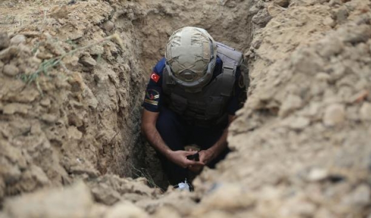 Bomba imha ekibinin incelemelerinin ardından el bombası iş makinesi ile açılan çukurda imha edildi.