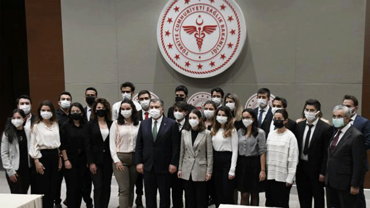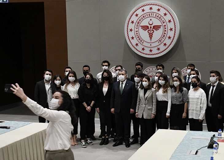 Sağlık Bakanı Fahrettin Koca, Türkiye'deki tıp fakültelerinin öğrenci temsilcileriyle bir araya geldi. Koca, "Hekimliğin meslek olarak yüceltilmesini, değerler noktasında layık olduğu algının her geçen gün güçlendirilmesini amaçlıyoruz" dedi.
