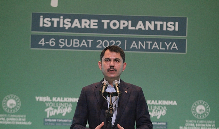 Çevre Şehircilik ve İklim Değişikliği Bakanı Murat Kurum, Antalya’nın Belek Turizm Merkezi’ndeki bir otelde Çevre, Şehircilik ve İklim Değişikliği Bakanlığı İstişare Toplantısı kapsamında “Yeşil Kalkınma Yolunda Türkiye” temasıyla düzenlenen toplantıya katıldı. Kurum, toplantının birincisini “2023’e Doğru, Türkiye’de Çevre ve Şehirciliğin Geleceği” temasıyla 2019 yılında gerçekleştirdiklerini hatırlatarak, bu yıl ise toplantıyı merkez teşkilatlar ile ilgili ve bağlı kuruluşların sunumları etrafında “Yeşil Kalkınma Yolunda Türkiye” temasıyla gerçekleştirdiklerinin altını çizdi.