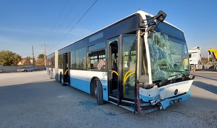 Kaza, Hatip Caddesinde saat 15.00 sıralarında meydana geldi. Hatunsaray istikametine doğru seyreden 42 CRV 76 plakalı kamyonetin sola dönüş yapmak istemesi üzerine arkadan gelen Mehmet A.D., idaresindeki Konya Büyükşehir Belediyesine ait 42 BBZ 16 plakalı Meram TOKİ seferini yapan otobüs çarpıştı.