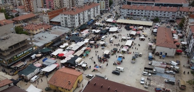 İçişleri Bakanlığı tarafından 81 il valiliğine pazar yerleri genelgesi gönderilmesinin ardından Konya Beyşehir ilçesinde pazarcılar tezgahlarını açtı.