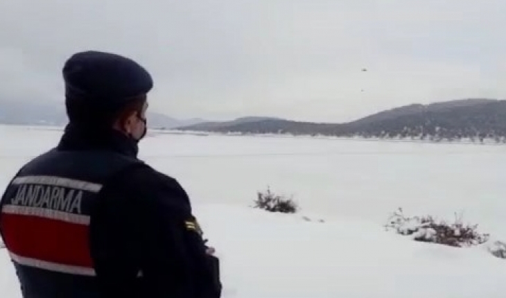 Konya'nın Beyşehir ilçesi Beyşehir Gölü'nde, etrafı buzla kaplanan adada mahsur kalan besicilere ihtiyaçları olan ilaç ve gıda kıyıdan drone aracılığıyla ulaştırıldı.