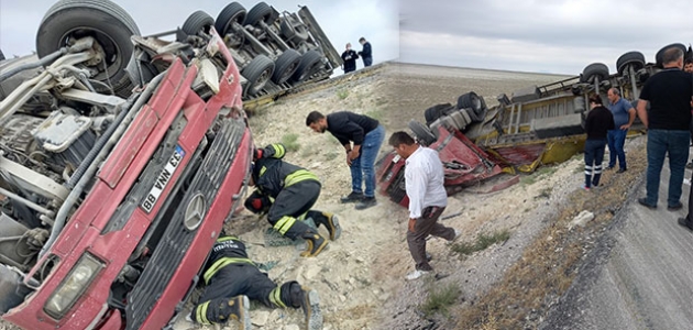 Edinilen bilgiye göre, T.E. idaresindeki 42 ADV 269 plakalı cip ile D.K. idaresindeki 33 NNA 88 plakalı tırın çarpışması sonucu kontrolden çıkan tır şarampole devrildi.