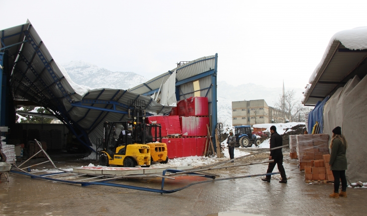 Amasya’da inşaat malzemeleri satan firmanın deposu çatısı biriken karların temizlenmeye çalışılmaya başlandığı an çöktü.