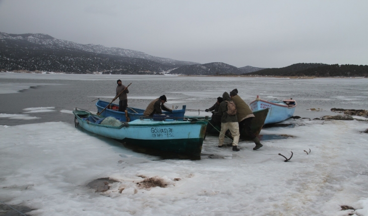 Beyşehir'in Yeşildağ Mahallesi'nde yaşayan besiciler Ahmet Eren, Yakup Eren ve Mustafa Gök, otlatmak için göl üzerindeki adaya bıraktıkları küçük ve büyükbaş hayvanlarının kar yağışı dolayısıyla yiyecek bulamamaları üzerine geçen hafta donan göldeki buzları kırarak tekneyle adaya ulaşmıştı.