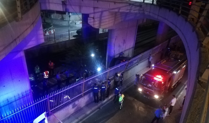Kaza, gece saatlerinde Bayraklı Mahallesi’nde meydana geldi. İddiaya göre, Kamil G., idaresindeki 50 DF 138 plakalı Volkswagen marka hafif ticari araç, Anadolu Caddesi istikametinden Cüneyt Süvari Oğulları Sokağı yönüne gitmekteyken sürücüsünün direksiyon hakimiyetini kaybetmesi sonucu viyadükte bulunan demir korkulukları yıkarak Bayraklı İZBAN Tren yoluna uçtu. Viyadük ayakları ve İZBAN Tren yolu istinat duvarı arasında sıkışan aracı gören çevredeki vatandaşların ihbarı üzerine adrese polis, 110 AKS ve 112 Acil Sağlık ekipleri sevk edildi.