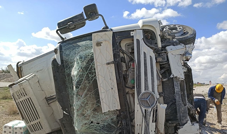 Aksaray-Konya karayolunda meydana gelen trafik kazasında, tır sürücüsü hurdaya dönen aracından burnu kanamadan kurtuldu.