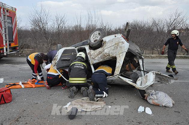 Kazada yaralanan Mevlüt N, Konya Büyükşehir Belediyesi İtfaiye Dairesi Başkanlığı'na bağlı Akşehir İtfaiye Merkezi ekiplerince araçta sıkıştığı yerden çıkartıldı.