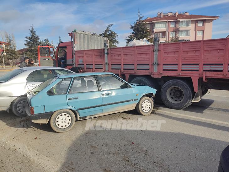Konya'nın Kulu ilçesinde iki otomobil ve bir kamyonun çarpışması sonucu meydana gelen trafik kazasında 2 kişi yaralandı.