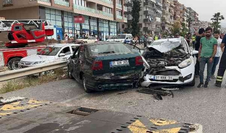 Hatay'ın İskenderun ilçesinde inşaat halindeki bir binanın çatısında intihara teşebbüs eden kişiyi izleyen sürücülerin direksiyon hakimiyetini kaybetmesi sonucu meydana gelen zincirleme kazada 5 kişi yaralandı.