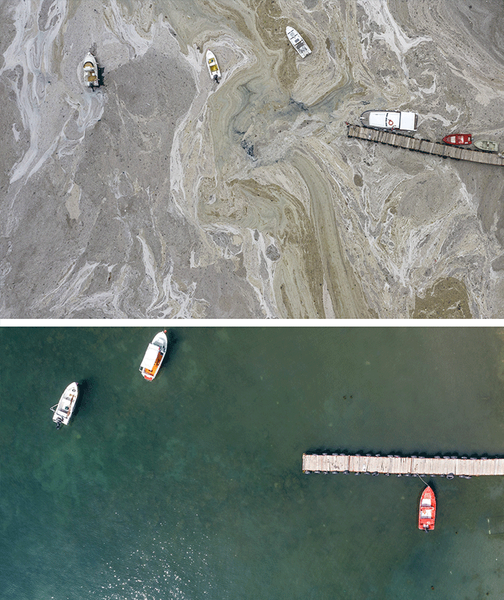 Müsilajın denizde etkisini yitirdiği çekilen görüntülere de yansıdı.