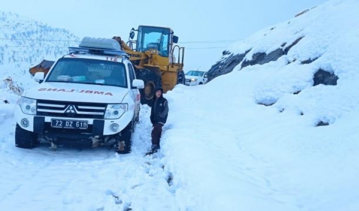 Batman'ın Sason ilçesinde rahatsızlanan böbrek hastası, sağlık ve karla mücadele ekibinin çabalarıyla hastaneye ulaştırıldı.