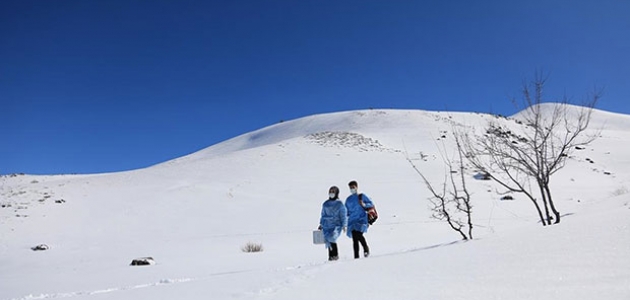 Bingöl'de yeni tip koronavirüs (Kovid-19) salgınıyla mücadele kapsamında aşı çalışmalarına devam eden sağlık personeli, köyünden çıkamayan vatandaşlara hizmet vermek için karlı yolları aşıp görevlerini fedakarca yürütüyor.
