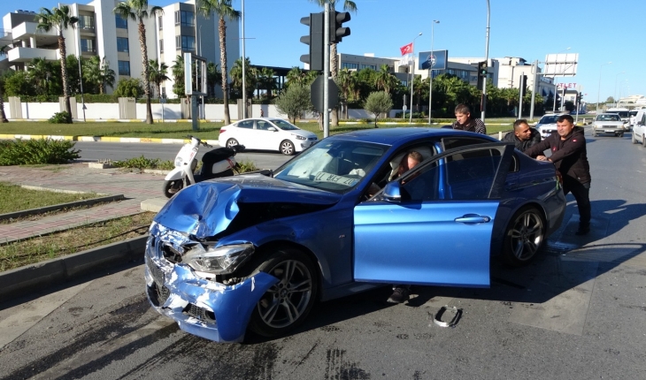 Antalya'nın Manavgat ilçesinde kırmızı ışık ihlali sonucu meydana gelen trafik kazasında araçlar hurdaya dönerken 1 kişi yaralandı.