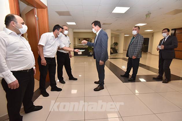 Başkan Kılca, Belediye Başkan Yardımcıları ve birim müdürleri, Tatlıcak Tesisleri'nin yanı sıra Park ve Bahçeler Müdürlüğü ile Karatay Belediyesi hizmet binasında da düzenlenen programda personelle bayramlaştı.