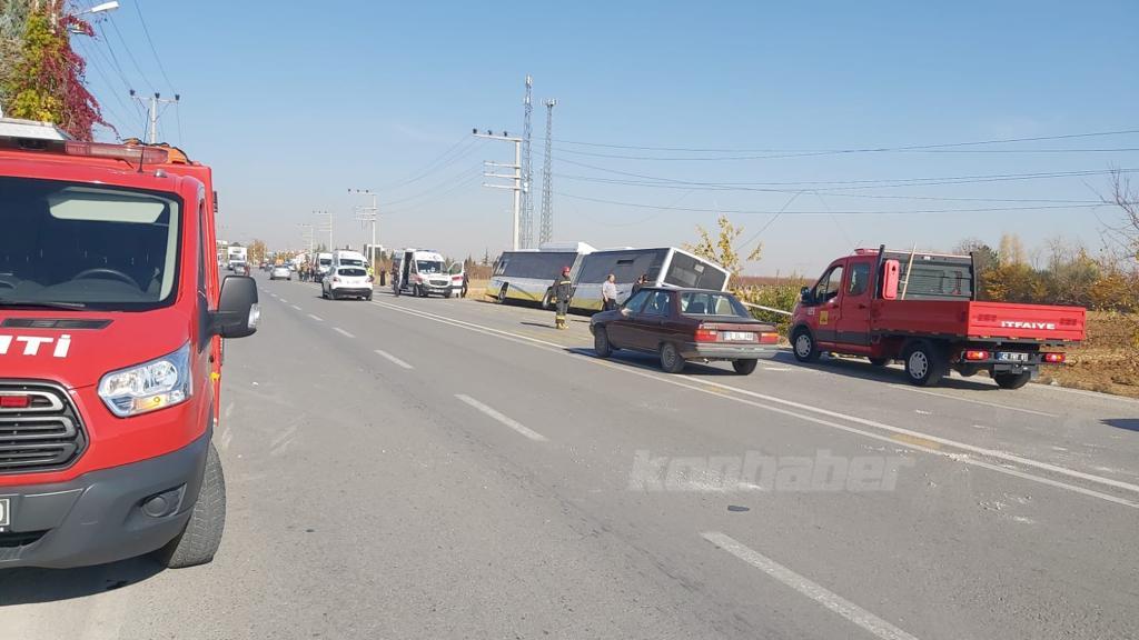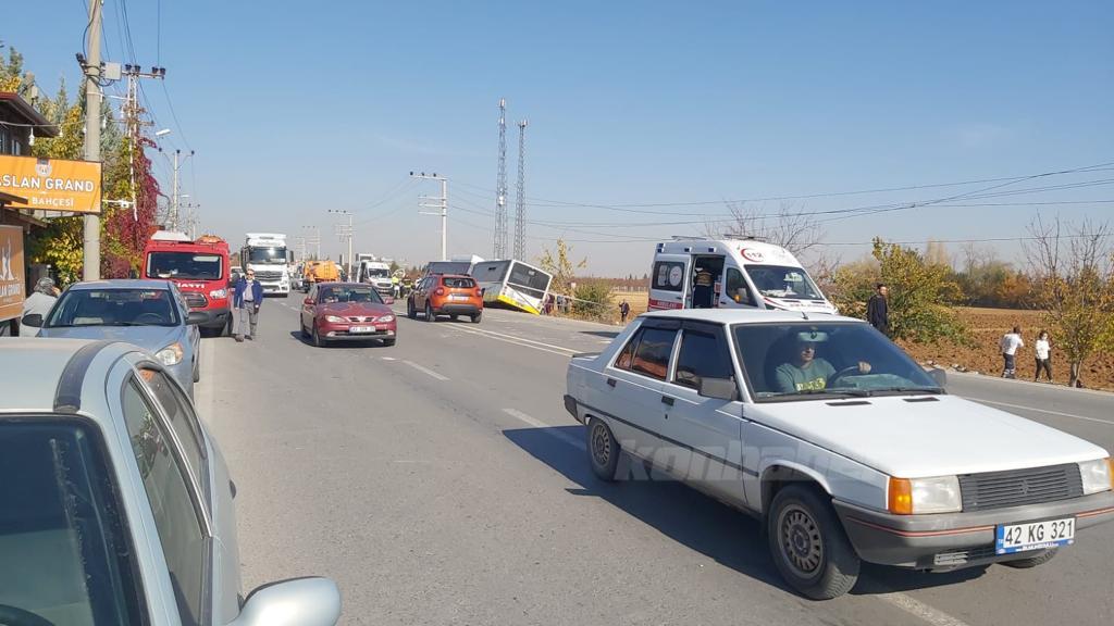 Konya’nın Meram ilçesinde yoldan çıkan Meram TOKİ otobüsü şarampole yan yattı. Devrilmek üzere olan otobüste bulunan 17 yolcu yaralandı.