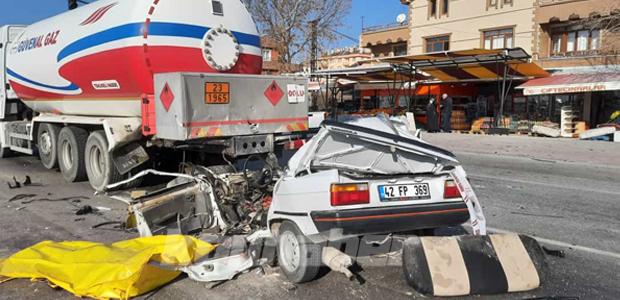Bir kişinin hayatını kaybettiği trafik kazası, Meram ilçesi Antalya çevreyolu Taşköprü caddesi kavşağında yaşandı. 59 yaşındaki Mehmet Keklikçi idaresindeki LPG yüklü tanker kırmızı ışıkta beklediği sırada, 32 yaşındaki Mustafa Hadimli'nin kullandığı 42 FP 369 plakalı otomobil arkadan çarptı.