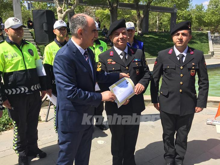 Konya Kültür Park'taki amfi tiyatroda düzenlenen törende konuşan Vali Vahdettin Özkan, polis ve jandarmaya bağlı trafik görevlilerinin kent genelinde etkin bir biçimde trafik kazalarını en aza indirmek konusunda büyük bir özveriyle çalıştığını söyledi.
