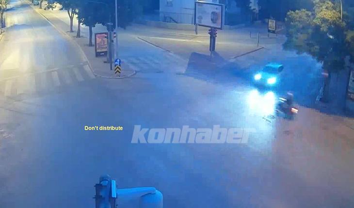 Konya’da kırmızı ışık ihlali yaptığı ileri sürülen motosikletin, otomobile çarpması sonucu meydana gelen trafik kazasında motosiklet sürücüsü yaralandı. Motosiklet sürücünün yaptığı kural ihlali ise kameraya yansıdı.
