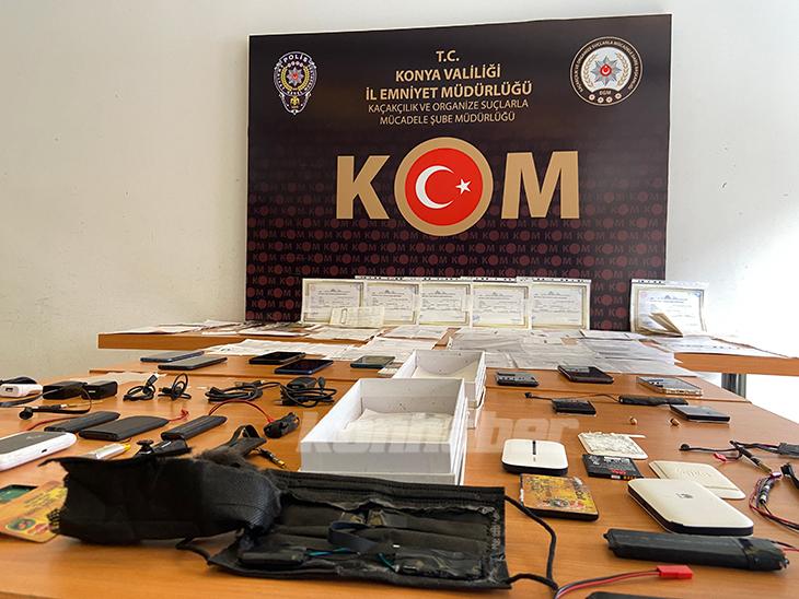 Edinilen bilgiye göre, Konya İl Emniyet Müdürlüğü Kaçakçılık ve Organize Suçlarla Mücadele Şube Müdürlüğü ekipleri, Motorlu Taşıtlar Sınavında başarısız olan kursiyerlerin yerine 'joker aday' olarak tabir edilen kişilerin sınava girdiği veya sınavda kursiyerlerin sesli ve görüntülü uyarı cihazlarıyla kopya çektiğini belirledi.