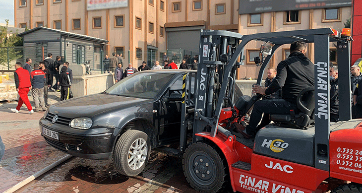Bir taraftan fabrikanın hemen yan kısmında bulunan madeni yağ fabrikasının çalışanları da yanıgının fabrikaya ulaşma ihtimaline karşılık forklift yardımıyla içeride bulunan madeni yağları dışarı çıkarttı.