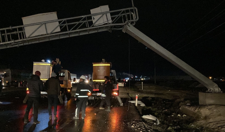 PTS direğinin devrilmesi sonucu iki istikamete de yol geçici süreliğine trafiğe kapatıldı.