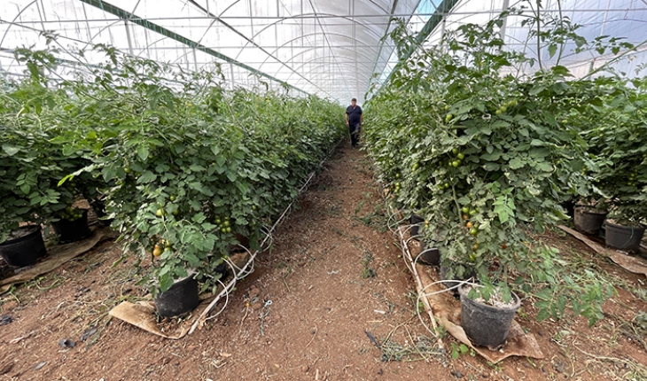 Alakova Mahallesi'nde 12 yıl önce 5 dekarlık serada üretime başlayan Ölmez kardeşler, domates, biber çeşitleri, salatalık ile yeşillik üretimini artırmak için çalışma yaptı.