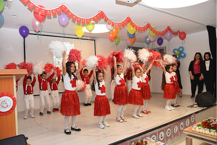 Tören, konuşmaların ardından anaokulu öğrencilerinin yaptığı gösteriler ile sona erdi.
