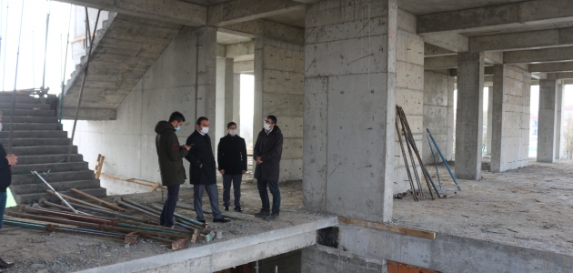 İlçe merkezi Ankara Caddesi üzerinde yapımı devam eden yeni hükümet konağı inşaat alanını gezerek çalışmaları yerinde inceleyen Kaymakam Budan, çalışmalarda gelinen son aşama hakkında yetkililerden bilgi aldı.