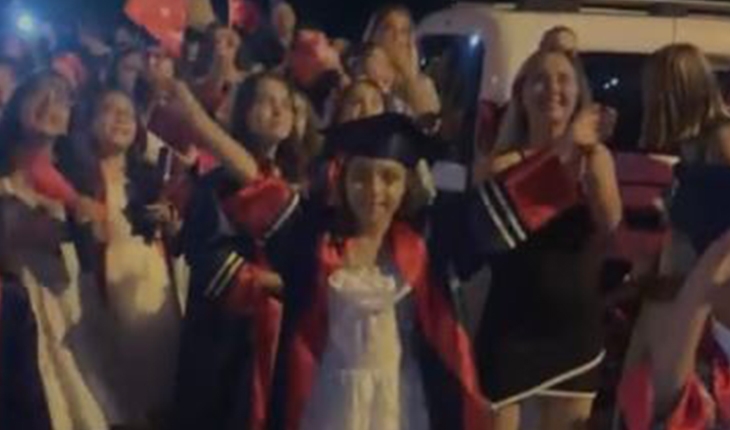 Antalya'da ilkokul öğrencileri, okulun mezuniyet törenine katılamayan öğretmenlerine sürpriz yaptı. Töreni öğretmenlerinin ayağına getiren öğrenciler, kepleri ve cübbeleriyle “Senden daha güzel” şarkısını söyledi.