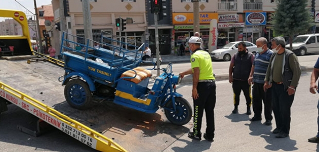 Kazada yola savrulan üç tekerlekli motosiklet sürücüsü yaralandı. Çevredeki vatandaşların ihbarı ile olay yerine sağlık ve polis ekipleri sevk edildi.
