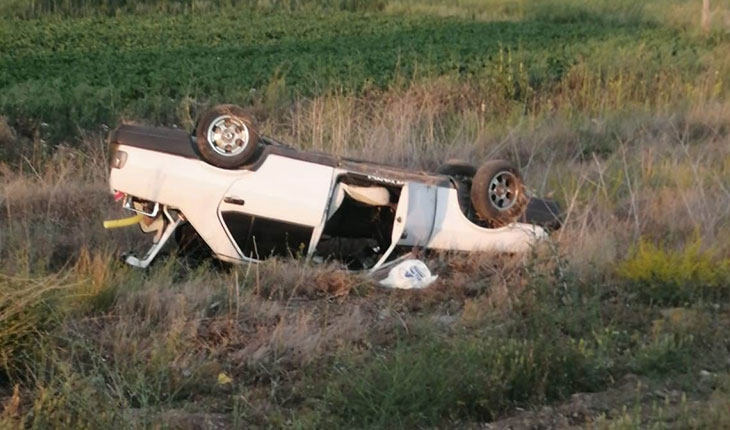 Tarla kenarındaki boş araziye devrilerek ters dönen aracın sürücüsü M.U. ve yolcular M.K., M.E.S. ile adı öğrenilemeyen bir kişi yaralandı.