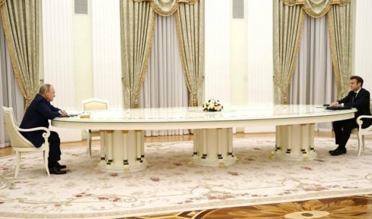 Bir ucunda Macron'un, diğer ucunda Putin'in oturduğu son derece uzun Kremlin masası, sosyal medyada alay konusu olmuştu.