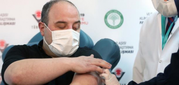 Sanayi ve Teknoloji Bakanı Mustafa Varank, koronavirüse karşı geliştirilen insan klinik denemelerinin Faz-1 aşamasındaki virüs benzeri parçacıklara dayalı (VLP) aşısının ilk dozunu yaptırdı.