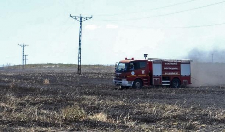 Çorlu-Sarılar yolu üzerindeki tarlada, iddiaya göre, yoldan geçen bir araçtan atılan sigara izmariti sebebiyle yangın çıktı.