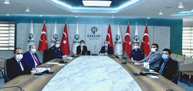 Karatay Kaymakamı Abdullah Selim Parlar başkanlığında düzenlenen toplantıda Türkiye genelinde uygulanan tam kapanmada yürütülen çalışmalar, alınan tedbirler, yapılan denetimler ile filyasyon ve izolasyon takibi gibi konular ele alındı.