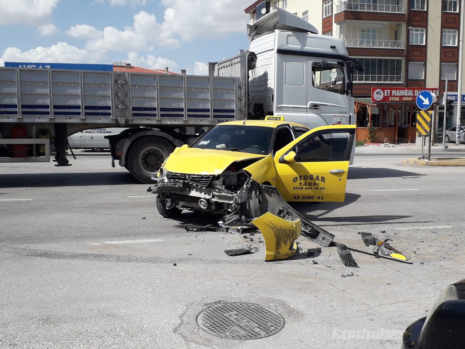 Alınan bilgiye göre, Mustafa Yaman (58) idaresindeki 42 GDC 01 plakalı ticari taksi ile Yusuf Sallanbaş (87) idaresindeki 42 GF 008 plakalı hafif ticari araç çarpıştı.