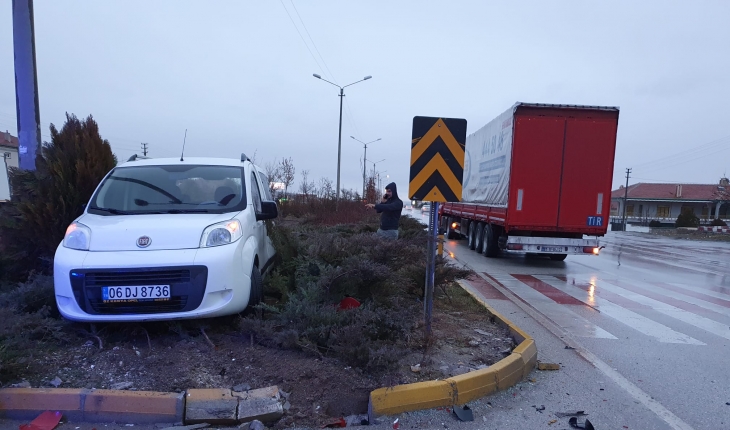 Alınan bilgiye göre, M. A. idaresindeki 31 ZC 485 plakalı tır ile Yusuf V.(29) idaresindeki 06 DJ 8736 hafif ticari araç çarpıştı.