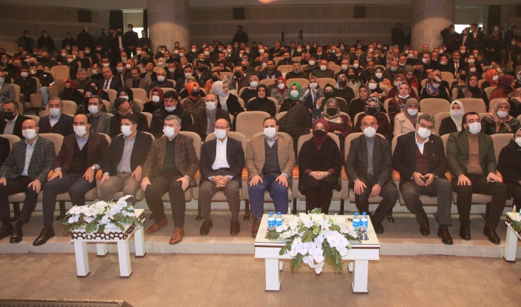 Mevlana Kültür Merkezi’nde gerçekleştirilen toplantıda konuşan AK Parti Konya İl Başkanı Hasan Angı, 20 yıl içerisinde pek çok engellerin aşıldığına vurgu yaparak, "20 yıl önce aziz milletimizle çıktığımız bu yolculukta önümüze pek çok engeller çıktı. Hamdolsun milletimizin cesaretiyle hepsi bir bir aşılarak bu günlere gelindi. Sandıklarda görev yapan kardeşlerimizden genel başkanımıza kadar milletimizin desteğiyle güçlü Türkiye yolunda emin adımlarla yürümemize rabbimiz müsaade etti. Bugün geldiğimiz noktada pandemi ve küresel iklim değişikliğiyle birlikte kuraklığın dünyada dengeleri bozduğu ve gıda fiyatlarında aşırı yükselişin yaşandığı bir dönemi Türkiye olarak biz de hissediyoruz. Bir taraftan da Türkiye yeni bir ekonomik modele geçme kararı aldı. Üreterek büyümeyle, yatırımlarla ve istihdamla Türkiye’yi güçlü kılmak adına yeni bir uygulama hayata geçti. Geçtiğimiz pazartesi gününden itibaren Türkiye’nin ekonomideki ayaklarının ne kadar güçlü bastığını, bununla ilgili atılan adımların ne denli doğru olduğunu görüyoruz. 2021 yılının son günlerine yaklaştık. Güçlü bir Konya Türkiye’nin gücüne güç katar. Bugüne kadar olduğu gibi 2023 seçimlerine de var gücümüzle hazırlanacağız. Bize düşen sahada var olmak. Birlikte olmanın bereketini bugüne kadar yaşadık. Bundan sonra da aynı güçle yolumuza devam edeceğiz” ifadelerini kullandı.
