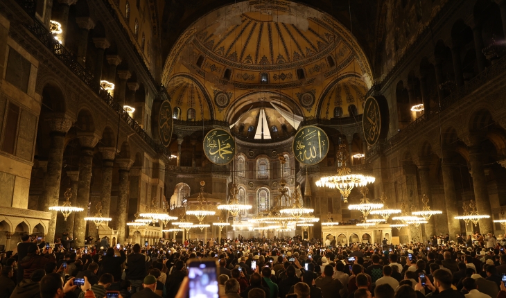 Ayasofya-i Kebir Cami-i Şerifi'nde, 88 yıl sonra ilk kez kılınan teravih namazında vatandaşlar caminin içinin yanı sıra Sultanahmet Meydanı'nı da doldurdu.