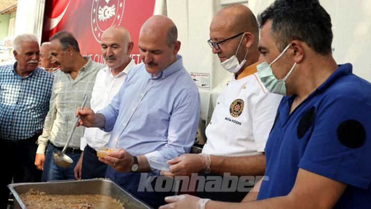 İçişleri Bakanı Süleyman Soylu, sel felaketinden etkilenen Kastamonu'nun Bozkurt ilçesinde aşure dağıttı.