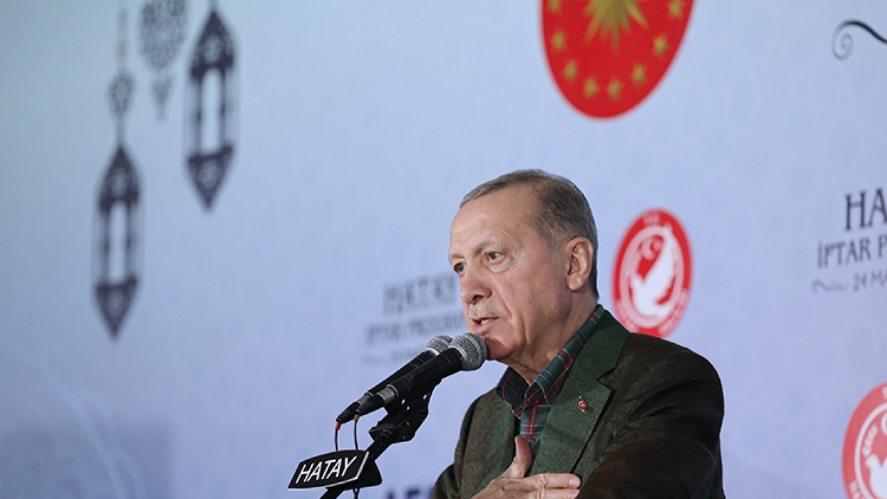Cumhurbaşkanı Erdoğan, Hatay'da konteyner kentteki iftar programında konuştu. Erdoğan, "Sizler yas tutarken, kendi ihtirasları peşinde koşanları Allah’a havale ediyoruz. Siyasi hırsları ve çıkarlarından başka bir şeyi görmeyen bu tuzu kurulara milletimiz çok yakında hak ettikleri dersi verecektir" dedi.