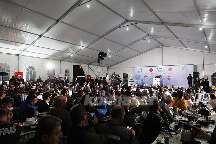 Cumhurbaşkanı Erdoğan, MHP Genel Başkanı Devlet Bahçeli ile Hatay'daki Büyükdalyan Konteyner Kenti'nde depremzede ailelerle iftar yaptı.