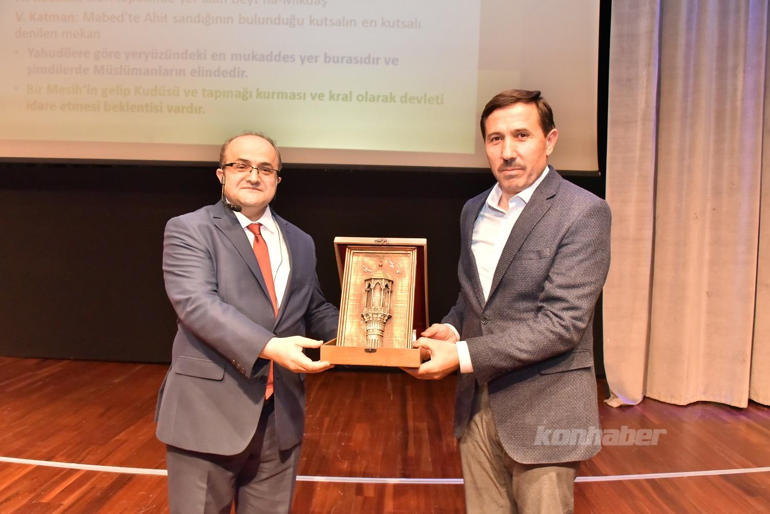Karatay Belediye Başkanı Hasan Kılca’nın konuşmasının ardından konferansa geçildi. Sunumunda Kudüs’ün genel yapısına, geçmişten günümüze bölgede yaşanan siyasi ve sosyal olaylara değinen Prof. Dr. Nuh Arslantaş şu ifadelere yer verdi;