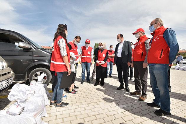 AK Parti Genel Başkan Yardımcısı, Konya Milletvekili Leyla Şahin Usta, Konya Büyükşehir Belediye Başkanı Uğur İbrahim Altay, Karatay Kaymakamı Abdullah Selim Parlar, Karatay Belediye Başkanı Hasan Kılca, Türk Kızılay Derneği Konya Şube Başkanı Hüseyin Üzülmez; Türk Kızılay Karatay Şubesi tarafından ihtiyaç sahiplerine dağıtılmak üzere hazırlanan gıda kolilerini ulaştıracak gönüllü yardım ekiplerini ziyaret etti.