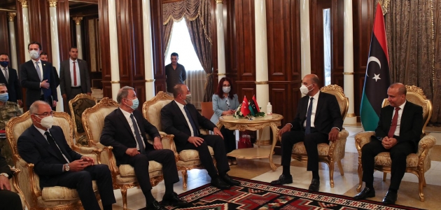 Libya Başkanlık Konseyi Başkanı Muhammed el-Menfi, Dışişleri Bakanı Mevlüt Çavuşoğlu ile Milli Savunma Bakanı Hulusi Akar'ı kabul etti.