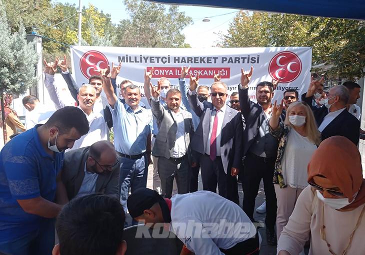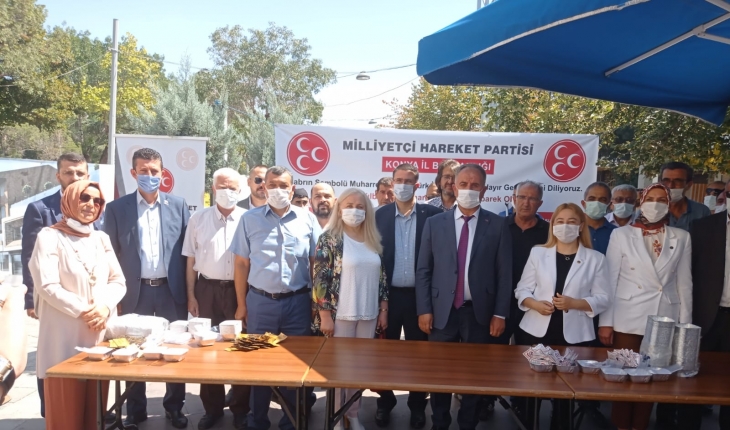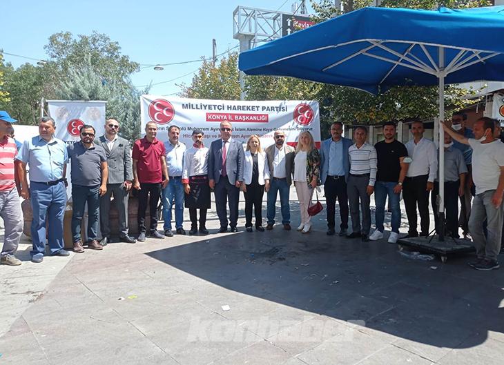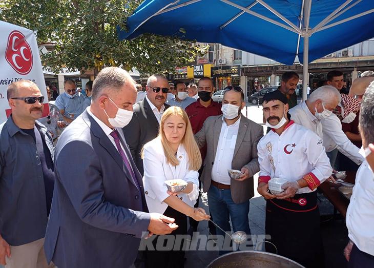 MHP Konya İl Başkanlığı tarafından Zafer Meydanı’nda düzenlenen aşure etkinliğine MHP Konya İl Başkanı Remzi Karaarslan, MHP Konya Milletvekili Esin Kara, MHP MYK üyeleri, Ülkü Ocakları Konya İl Başkanı Yusuf Kasım Akta, MHP İlçe Başkanları katıldı.
