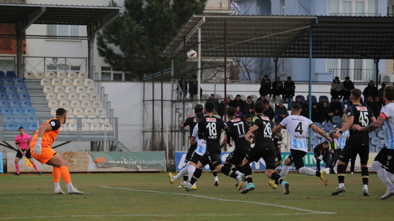 5’inci dakikada ceza sahası dışında serbest vuruş kullanan Ertuğrul’un kaleye gönderdiği sert şut filelerle buluştu.: 1-0