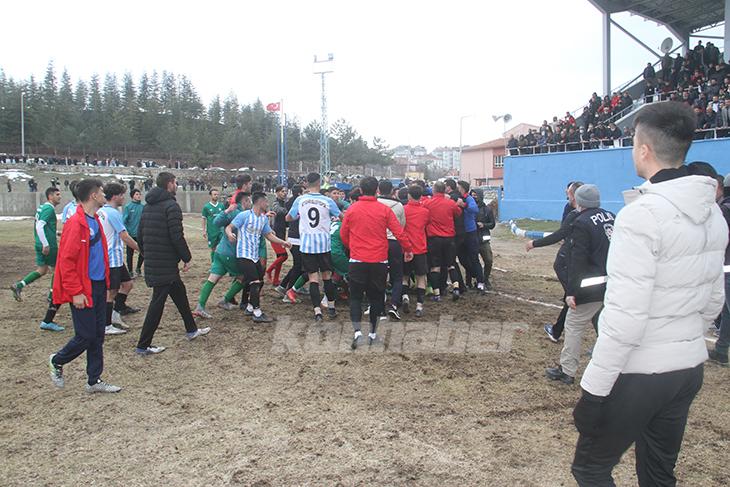 Konya’nn Beyşehir ilçesinde, berabere biten amatör müsabaka maçının bitiş düdüğünün ardından sahada oyuncular arasında gerginlik yaşandı.