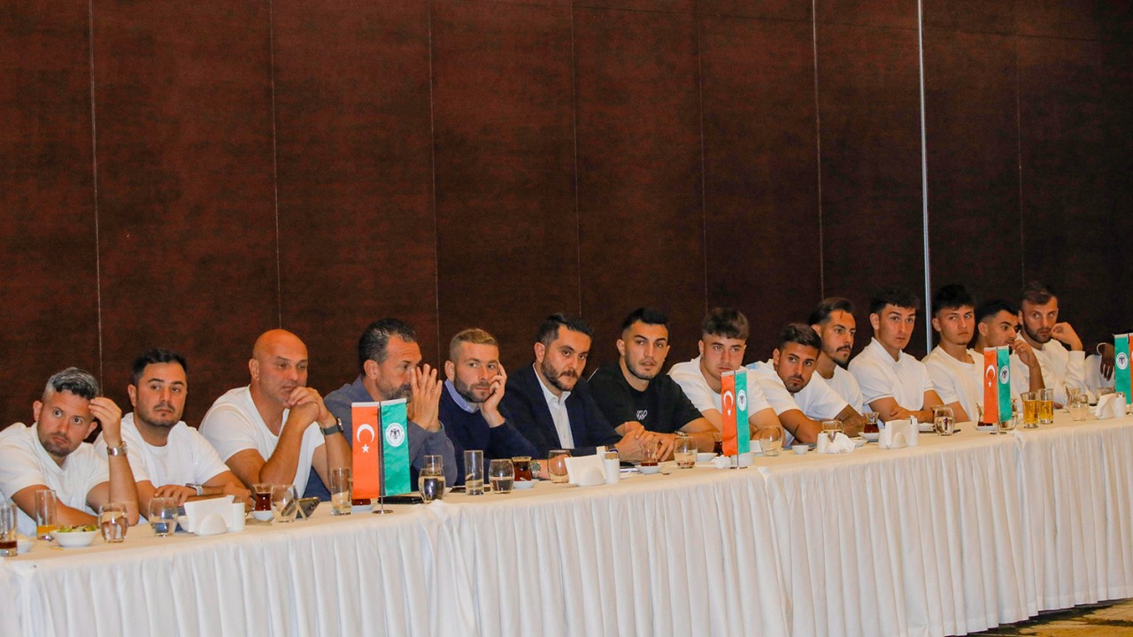 Yeşil-beyazlı futbolcularla akşam yemeği yiyen yönetim; kritik maçta takıma başarılar diledi. Yemekte kısa bir konuşma yapan başkan Ömer Korkmaz, Eyüpspor maçının önemine ve takıma güvendiklerine değindi. (Büşra Üstündağ)